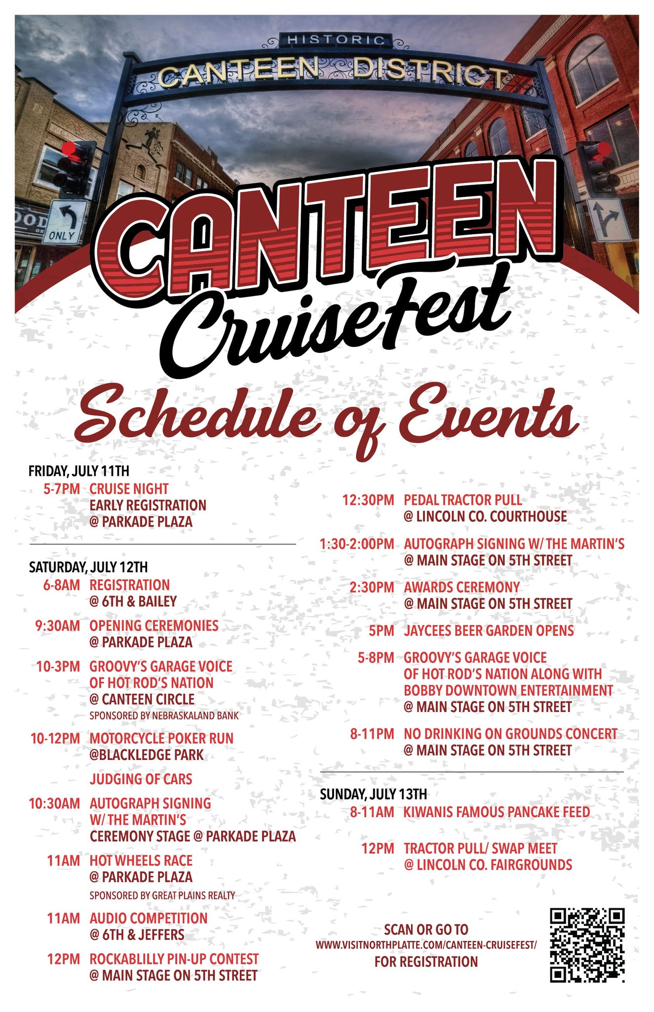 Canteen CruiseFest is the ultimate car show and event packed weekend held in the historic downtown Canteen District of North Platte! In addition to the car show, there is a pancake feed, kids and adult tractor pull, motorcycle poker run, matchbox car races, live music, beer garden, food trucks, Rockabilly Contest, loud stereo contest, and many other fun events.